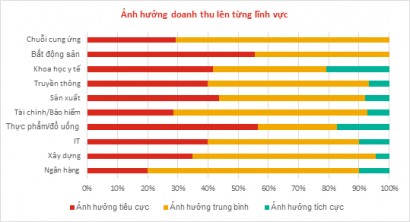Theo khảo sát, 93% các công ty bị ảnh hưởng của COVID-19 lên hoạt động tài chính. Trong số đó, 43% doanh nghiệp bị ảnh hưởng nghiêm trọng có doanh thu sụt giảm tới 21-40%. Ba lĩnh vực bị ảnh hưởng nặng nề nhất là ngành Thực phẩm & Đồ uống (47%), Bất động sản (56%) và Sản xuất (44%).