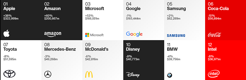 Bảng xếp hạng Best Global Brands 2020 về giá trị thương hiệu (Nguồn: Interbrand)