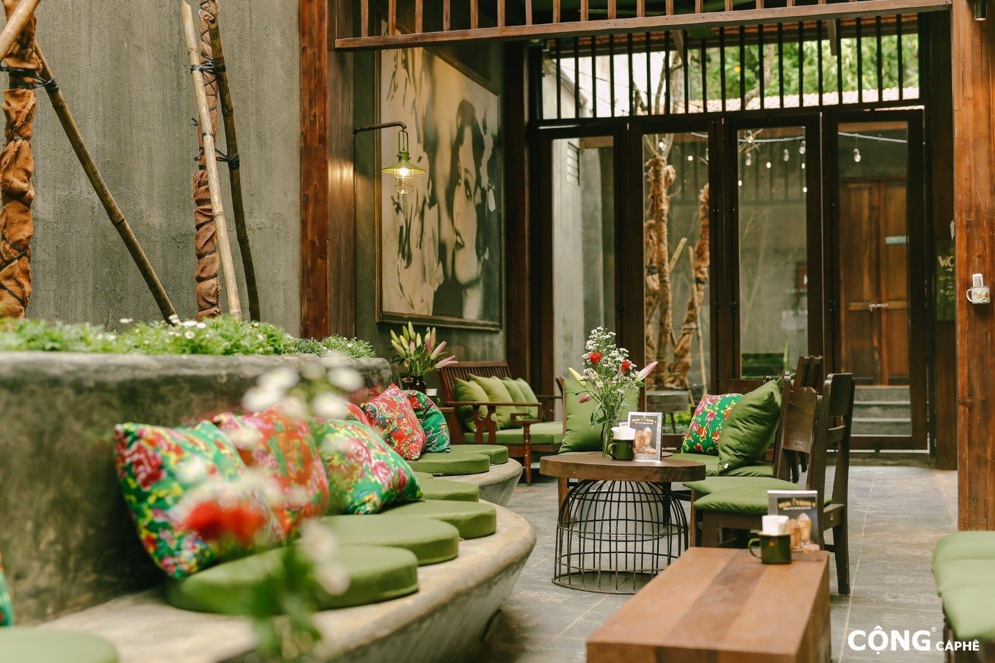 Cộng Cà phê thành lập năm 2007, được khách hàng quen thuộc qua mô típ bài trí chủ đạo là màu xanh bộ đội, vỏ chăn con công và không gian quán theo hơi hướng hoài cổ thời bao cấp.