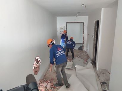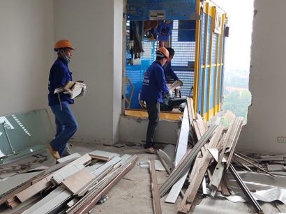 Ghi nhận của PV tạp chí Pháp Lý tại công trình số 8B Lê Trực trong buổi sáng 16.5, nhiều hạng mục tường, vách, kính… tại tầng 18 đang được công nhân tháo dỡ và vận chuyển ra ngoài, đảm bảo an toàn về kỹ thuật.