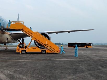 Theo đó, Cảng HKQT Vân Đồn áp dụng quy trình phục vụ hành khách khép kín phía ngoài nhà ga đối với chuyến bay về từ châu Âu. Cụ thể, tàu bay khi hạ cánh đậu ở bãi đỗ xa. Sau đó, xe bus chở hành khách lần lượt vào làm thủ tục tại khu vực phía ngoài nhà ga, đảm bảo không ảnh hưởng tới hoạt động chung của sân bay, tránh lây nhiễm chéo cho nhân viên cũng như các hành khách khác.