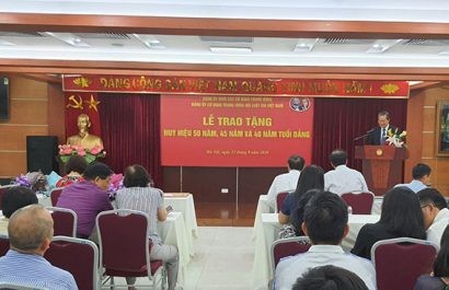 (Pháp lý) - Chiều ngày 22/9, Đảng uỷ cơ quan Trung ương Hội Luật gia Việt Nam đã long trọng tổ chức Lễ trao Huy hiệu 50 năm tuổi Đảng cho đồng chí Lê Minh Tâm, nguyên Phó bí thư Đảng đoàn, nguyên Bí thư Đảng uỷ cơ quan Trung ương Hội Luật gia Việt Nam, nguyên Phó Chủ tịch kiêm Tổng thư ký Hội Luật gia Việt Nam; trao Huy hiệu 45 năm tuổi Đảng cho đồng chí Đặng Thị Thanh, Giám đốc Trung tâm tư vấn pháp luật cộng đồng và trợ giúp pháp lý cho người chưa thành niên; trao Huy hiệu 40 năm tuổi Đảng cho đồng chí Võ Việt Hà, Phó trưởng Ban tư vấn Pháp luật và trợ giúp pháp lý và đồng chí Trần Văn Quảng, Phó trưởng Ban nghiên cứu xây dựng và phổ biến pháp luật thuộc TW Hội Luật gia Việt Nam.