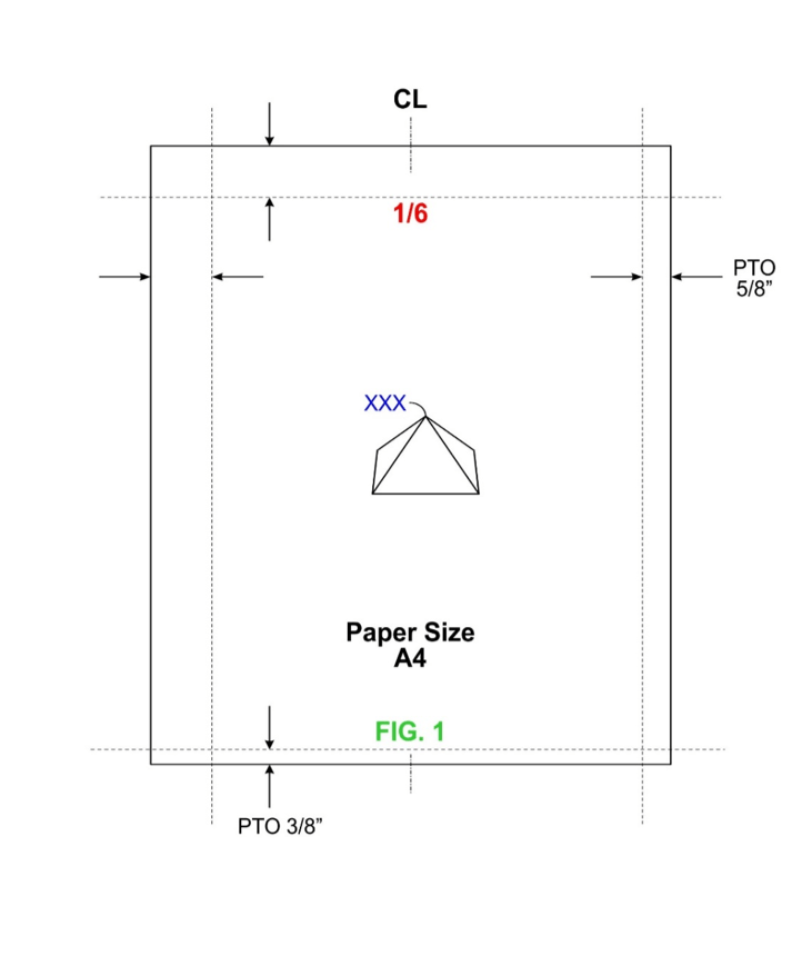 Đặc điểm cuối cùng cần lưu ý trong Mẫu A là căn lề. Đây là các yêu cầu do USPTO đặt ra. Hầu hết trong quá trình thiết kế sẽ có lề đạt mức tối thiểu để đảm bảo hình vẽ của bạn nằm trong bề mặt bản vẽ và không có khả năng bị mất một phần của hình khi nó bị thu nhỏ.