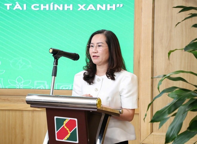 Bà Phạm Thị Thanh Tùng – Phó Vụ trưởng Vụ Tín dụng các ngành kinh tế nhấn mạnh, ngành Ngân hàng nhận thức rõ vai trò quan trọng của tín dụng xanh trong việc thúc đẩy tăng trưởng bền vững. (Ảnh: Vietnam+)