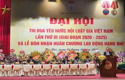 (Pháp Lý) - Sáng ngày 2/10/2020, tại Hà Nội, Hội Luật gia Việt Nam (HLGVN) đã long trọng tổ chức Đại hội thi đua yêu nước HLGVN lần thứ III (giai đoạn 2020 – 2025) và đón nhận Huân chương Lao động hạng Nhì . Phát biểu khai mạc Đại hội, đồng chí Nguyễn Văn Quyền, Bí thư Đảng đoàn, Chủ tịch HLGVN đã nêu bật những kết quả mà giới Luật gia Việt Nam đã đạt được trong phong trào thi đua yêu nước , vì sự nghiệp cao cả xây dựng Nhà nước pháp quyền Việt Nam XHCN và bảo vệ công lý.