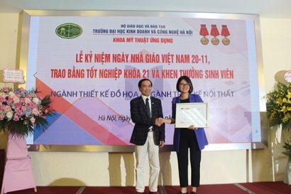 Chủ nhiệm Khoa ThS. Họa sỹ Bùi Quang Hải chúc mừng các thầy cô nhân ngày nhà giáo Việt Nam 20/11. Trong năm học qua, thầy trò Khoa Mỹ thuật Ứng dụng đã gặt hái được những thành tích đáng khích lệ. Theo đánh giá của Hiệp hội các trường Đại học và Cao đẳng Việt Nam, Câu lạc bộ khối các trường đào tạo mỹ thuật ứng dụng toàn quốc, Khoa Mỹ thuật Ứng dụng HUBT được đánh giá là một cơ sở đào tạo có uy tín và chất lượng cao. Số thí sinh đăng ký vào khoa ngày càng đông, đứng top đầu so với các trường ngoài công lập. Nhiều doanh nghiệp đã đến khoa xin hợp tác, đăng ký tuyển dụng nhân sự. Ngoài đào tạo trên giảng đường, Khoa còn tổ chức cho sinh viên đi thực tế, thực tập mỹ thuật cơ sở tại Mai Châu, Hòa Bình, đến một số đơn vị doanh nghiệp sản xuất để nghiên cứu, lấy tài liệu cho bìa làm thiết kế của mình.