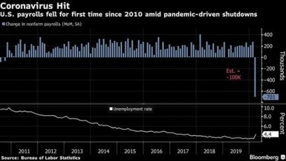 Nhìn vào thị trường lao động Mỹ, trong tháng 3, số việc làm giảm tới 701.000 - cao hơn nhiều lần so với mức dự báo giảm 100.000 được các chuyên gia kinh tế tham gia khảo sát của Bloomberg đưa ra trước đó. Những con số này thậm chí còn đáng lo ngại hơn khi hiện tại mới chỉ là thời gian đầu mà thị trường lao động chịu thiệt hại, do nhiều công ty sa thải nhân viên và ngừng hoạt động.