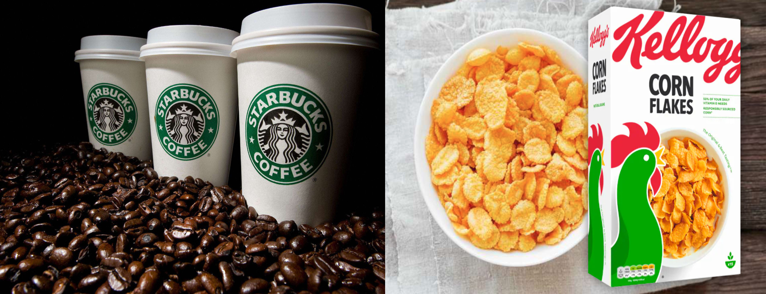 Kellogg's gắn liền với loại thực phẩm là lúa ngô, tên nhãn hiệu này được sử dụng sau khi đã có sản phẩm và gắn với một cột mốc trong cuộc sống hàng ngày của con người là bữa ăn sáng. Con người không những chỉ có nhu cầu, mà còn cả trách nhiệm phải ăn sáng và Kellogg's nỗ lực quảng cáo để mọi người tin rằng sản phẩm của hãng khiến bữa ăn sáng hoàn hảo và đầy ý nghĩa. Đơn giản chỉ có thế mà Kellogg's trở thành một trong những nhãn hiệu sáng giá nhất thế giới.