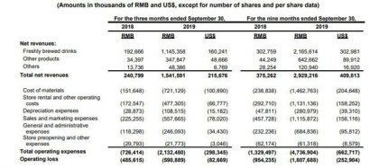 Kết quả kinh doanh của công ty trên giấy tờ cũng ngày một tốt lên, tỷ lệ thuận với số lượng cửa hàng, theo báo cáo của công ty. Doanh thu quý 3 và 9 tháng đầu năm 2019 của Luckin đạt lần lượt là 215 triệu USD và 410 triệu USD - gấp 8 lần cùng kỳ.