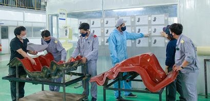 Nhà máy Linh kiện Composite của THACO bắt đầu sản xuất khung ghế composite trong năm nay sau khi ký hợp đồng hợp tác sản xuất vào tháng 2/2020 với TIP Composite – công ty Nhật có trụ sở tại thành phố Osaka và 2 nhà máy tại tỉnh Nagano, chuyên thiết kế, sản xuất và cung cấp các sản phẩm composite như các thiết bị vận tải, công nghiệp, thiết bị y tế, liên lạc… Theo thỏa thuận, TIP Composite chuyển giao công nghệ và đưa kỹ sư Nhật đến đào tạo trực tiếp tại nhà máy Linh kiện Composite ở Chu Lai và sản phẩm được cung cấp cho TIP Composite. Các sản phẩm được đánh giá chất lượng bởi chuyên gia Nhật Bản.