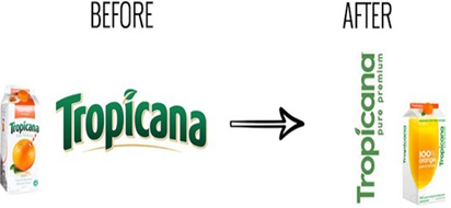 Điển hình như việc thay đổi hoàn toàn bộ nhận diện thương hiệu của Tropicana vào năm 2009. Các thay đổi được tiến hành như thay hình ảnh trái cam với ống hút thành ly cam ép, đổi mới hoàn toàn logo và slogan từ “Pure Premium” thành “100% Orange”. Theo đó, khách hàng trung thành cho biết họ thấy xa lạ với thương hiệu, đặc biệt là việc đổi bao bì và slogan khiến họ cảm giác nước cam không con tươi và tinh khiết như trước. Thay đổi này bị đánh giá là tầm thường và hoàn toàn không còn nhận ra được thương hiệu quen thuộc, tạo ra nghi ngờ về chất lượng sản phẩm.