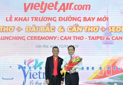 Hãng hàng không thế hệ mới Vietjet khai trương hai đường bay quốc tế đầu tiên kết nối Cần Thơ - thủ phủ Đồng bằng sông Cửu Long với Đài Bắc (Đài Loan, Trung Quốc) và Seoul (Hàn Quốc). Cũng nhân dịp này, Vietjet đã trao quà tặng đồng hành cùng Quỹ Vì người nghèo của thành phố Cần Thơ, mang tới một mùa Tết thật ấm áp và tràn đầy yêu thương cho các hoàn cảnh khó khăn nơi đây.