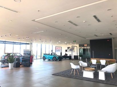 Khu vực showroom của MINI rộng 525 m2, được thiết kế theo phong cách hiện đại pha lẫn cổ điển theo kiểu Anh Quốc. Tại đây khách hàng sẽ được chiêm ngưỡng từ những mẫu MINI 3 cửa đầy phá cách, MINI Convertible hiện đại cho đến những mẫu MINI 5 cửa mang lại sự hoàn hảo cho những chuyến đi.