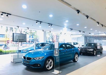 Trong tổ hợp, showroom của BMW có diện tích lớn nhất rộng 1.116 m2 và được trưng bày 10 mẫu xe mới nhất của BMW tại Việt Nam. Tầng một trưng bày các mẫu xe từ 1 Series đến 5 Series, bao gồm những mẫu xe mới nhất của 3 Series là 320i Sportline, 320 Sportline Plus và 330i M Sport.