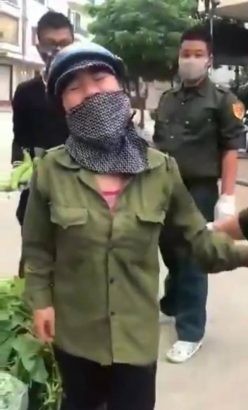 Trong đoạn video, trên tay chị bán hàng rong cũng bất ngờ xuất hiện một con dao. Ngay lập tức, chị bị lực lượng chức năng khống chế trong tiếng gào khóc lớn hơn “em không bán nữa, em đi về rồi”. Hình ảnh trong video chưa thể hiện rõ người bán rau cầm dao với mục đích làm gì, nhưng vị nữ cán bộ cho rằng chị này “cố tình cầm dao để chém lại lực lượng chức năng”.