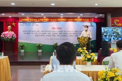 Chiều 26/5 tại Hà Nội, Ngân hàng TMCP Ngoại thương Việt Nam (Vietcombank) đã trao 38 tỷ đồng hỗ trợ 10 tỉnh, thành phố mua vaccine phòng COVID-19.