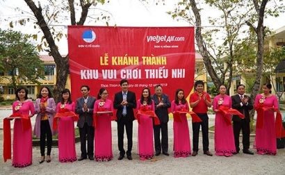 Cũng trong khuôn khổ “Hành trình Tôi yêu Tổ quốc tôi” tại Thừa Thiên – Huế, Vietjet đã trao 15 suất học bổng cho các em nhỏ có hoàn cảnh khó khăn có thành tích học tập xuất sắc ở xã Quảng Thọ, huyện Quảng Điền; khánh thành điểm vui chơi thiếu nhi do Vietjet tài trợ cho Trường tiểu học Quảng Thọ; tặng sách viết về đại tướng Nguyễn Chí Thanh cho các thầy cô và học sinh của xã Quảng Thọ.
