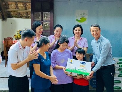 Bên cạnh món quà học bổng, Vinamilk và Quỹ sữa Vươn cao Việt Nam cũng mang tới cho gia đình Đạt và các bạn nhỏ trong xóm những sản phẩm sữa giàu dinh dưỡng của Vinamilk để phần nào giúp chị em Đạt cùng mẹ tăng cường sức khỏe và đề kháng. Những hộp sữa cũng giúp chị em Đạt lan tỏa, chia sẻ niềm vui của mình với các bạn, em nhỏ trong xóm.